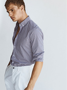 修身款格紋襯衫